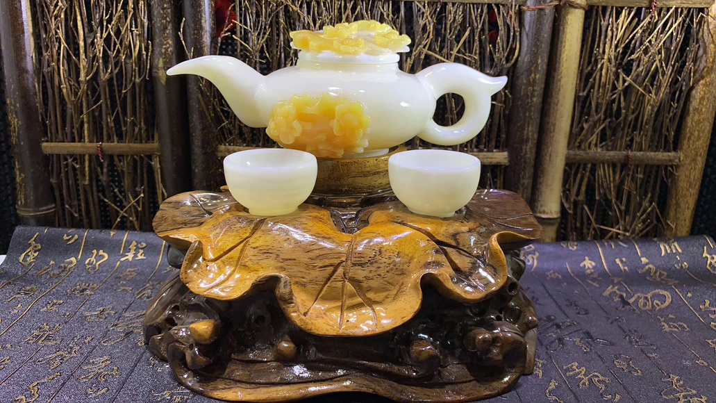 天然潤玉茶壺茶杯