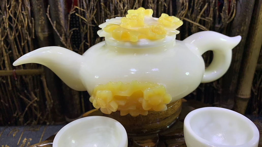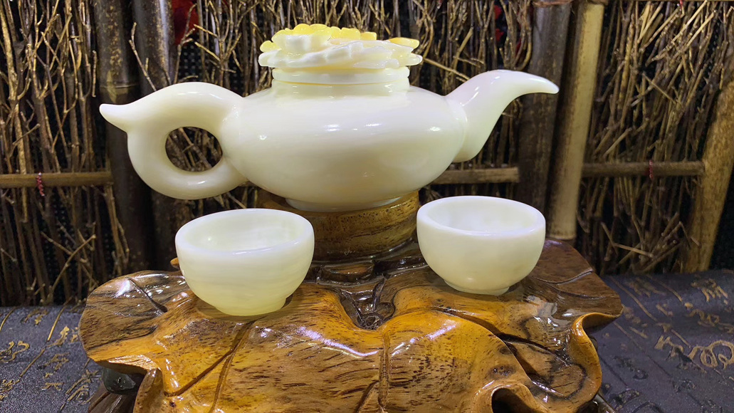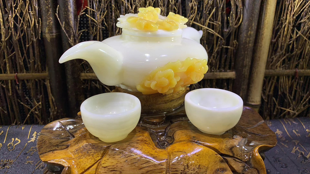 天然潤玉茶壺茶杯
